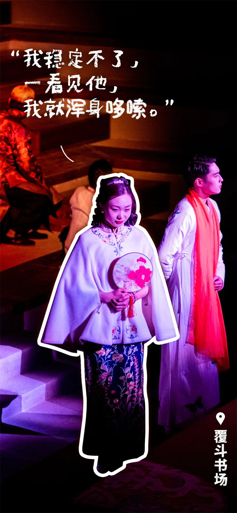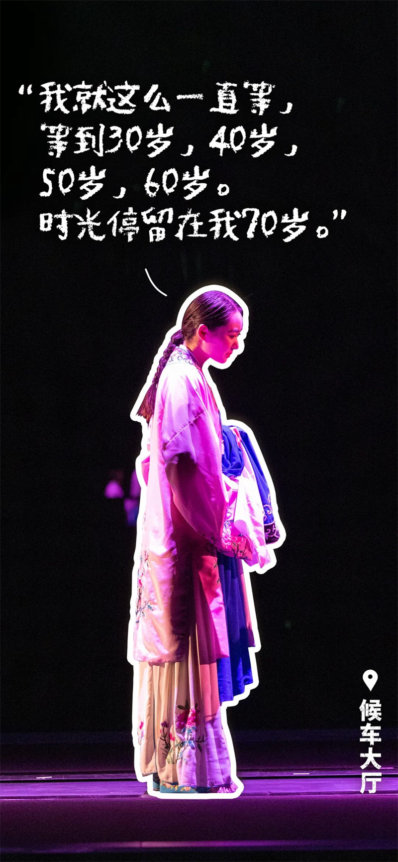 “女性,應(yīng)該是什么樣子?”在三八節(jié)快到時(shí),你是會(huì)去思考這個(gè)問(wèn)題的答案,還是去思考,為什么會(huì)有這樣的問(wèn)題?在幻城21個(gè)劇場(chǎng)中,有幾百個(gè)不同年代,不同身份的女性形象。她是進(jìn)步的,是守舊的,她是溫柔的,是剛強(qiáng)的,她是純真的,是滄桑的。會(huì)有觀眾問(wèn):你們這樣設(shè)置角色/臺(tái)詞……是在暗示什么嗎?是在定義女性嗎?不,我們呈現(xiàn)她們,我們不評(píng)判她們。“她”可以是任何樣子。