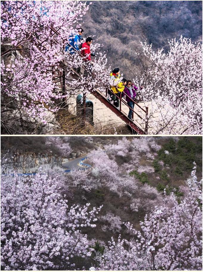 已經(jīng)進入開放期的靳家?guī)X萬畝桃花動人極了,一叢叢,一簇簇,漫山遍野姹紫嫣紅!,乘坐索道高空賞花,舒適愜意。