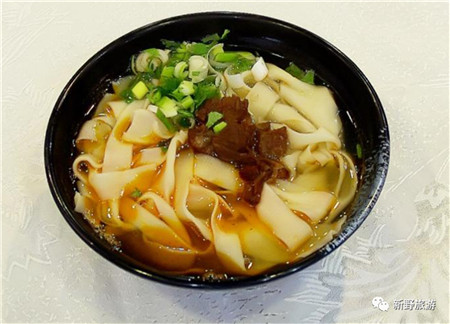 面條白、菜葉綠、臊子紅,這就是新野人人贊不絕口的板面。初看起來其貌不揚(yáng),但等攪拌均勻,濃濃的香味就會隨著面的翻滾,撲鼻而來。嚼上一口,讓面在嘴里產(chǎn)生愉悅的彈性,此時,方能體會到新野板面的獨(dú)特。