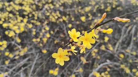 連翹和迎春都是在初春時節(jié)開放的小黃花,市區(qū)的河湖水系邊很常見。