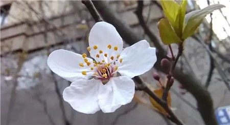 紅葉李的花朵較小,呈白色或粉紅色,盛開時帶著微微的馨香。