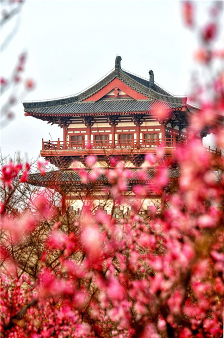 最先拉開春天帷幕的,是隋唐城遺址植物園中的處處梅花景,喚醒了沉睡的春意,迎春花、紅葉李、櫻花、碧桃也會陸續(xù)盛放,更有“名動京城”的牡丹花,將在四月明媚整個洛陽。