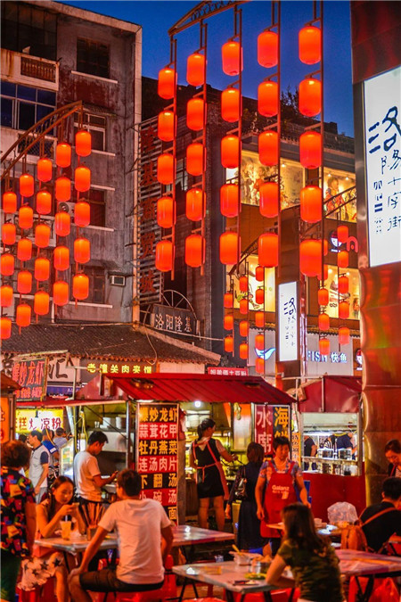 到了夜晚,燈火初升,一群群“吃貨”們帶著敏銳的嗅覺,蜂擁到十字街,從街頭品到巷尾,想必每人都帶著“不嘗一遍美食誓不罷休”的信念感吧。😋