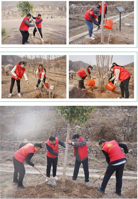 春風(fēng)催新綠,植樹正當(dāng)時。3月11日上午,景區(qū)職工們來到紅旗渠勞動實踐教育基地,開展“植綠護綠 關(guān)愛自然”義務(wù)植樹活動。植樹現(xiàn)場氣氛熱烈,一派繁忙景象,大家揮鍬鏟土、培土圍堰、提水澆灌......一株株樹苗迎風(fēng)而立,為春天增添生機!