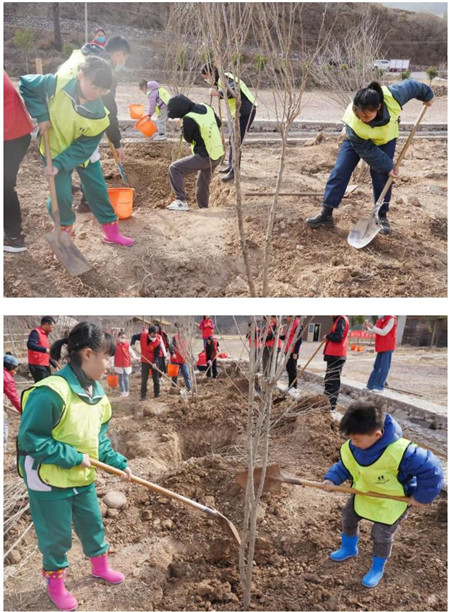 植綠護綠、關(guān)愛自然是中華民族的傳統(tǒng)美德。景區(qū)組織親子家庭、學(xué)生開展植樹研學(xué)活動。
