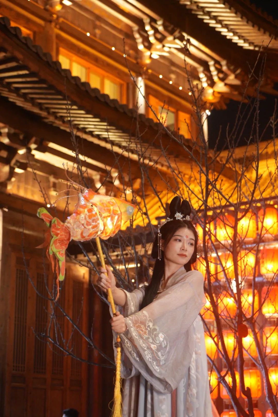青石古巷,彤彤燈萬盞搖曳,游人闌珊醉,拍一張漢服佳人賞燈圖,一定能讓你成為朋友圈令人“驚艷”的那一個(gè)。