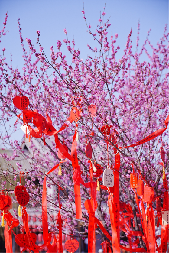 祈福朱帶飄舞,一樹錦繡花繁。將一個(gè)又一個(gè)美好的心愿,繾綣纏繞在樹,訴與春風(fēng)聽。