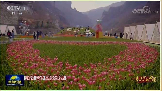 春風(fēng)送暖,花開正艷,3月12日,央視新聞聯(lián)播《春天里的中國(guó)》聚焦寶泉百萬(wàn)郁金香花海,迎著微風(fēng),踏青賞花,來(lái)寶泉大峽谷看一場(chǎng)浪漫的春日盛典!