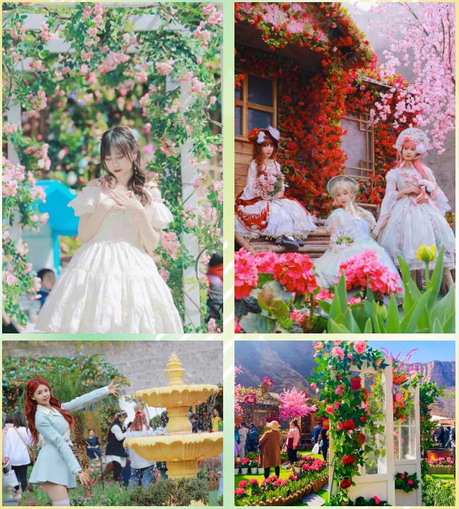 小院隨手抓一束風(fēng),就是春的味道,不論是玫瑰瀑布,還是噴泉和花廊,草莓熊爬滿夢(mèng)幻木屋的打卡場(chǎng)景,走入這里的游客無(wú)不驚嘆場(chǎng)景的布置。