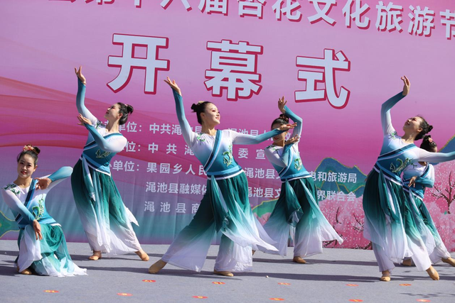 在開幕式表演環(huán)節(jié),男聲四重唱《花兒與少年》、散文詩(shī)朗誦《春風(fēng)如詩(shī),看十里杏花》等節(jié)目精彩上演。表演結(jié)束后,身著古裝的“杏花仙子”漫步杏林中,引來(lái)眾多游客拍照留念。