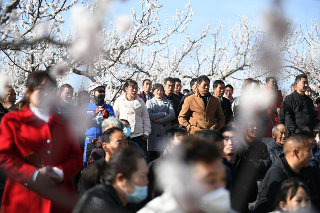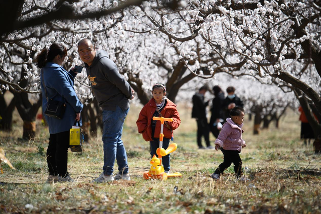 游客們循香而來(lái),享受杏花帶來(lái)的春的氣息。 張春光 攝