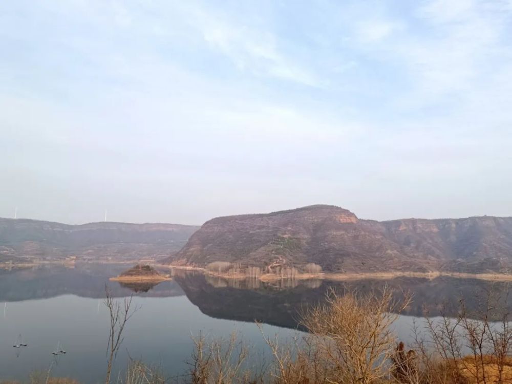 在大峪灣遠(yuǎn)眺,只見水光一色、山水相連,寬闊的河面波瀾不驚,偶爾有水鳥掠過水面,泛起陣陣漣漪,充滿詩情畫意。