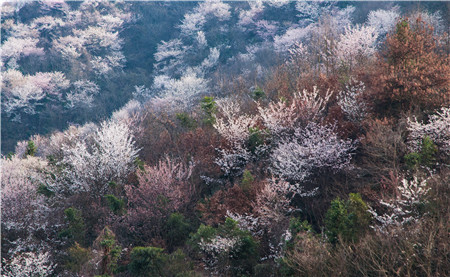 2023年3月開(kāi)始,河南省信陽(yáng)市新縣千斤鄉(xiāng)、蘇河鎮(zhèn)、香山湖管理區(qū)、田鋪鄉(xiāng)境內(nèi)的野櫻花競(jìng)相綻放。一株株野櫻花如滿天星辰點(diǎn)綴在群山之間,絢麗燦爛,分外妖嬈。