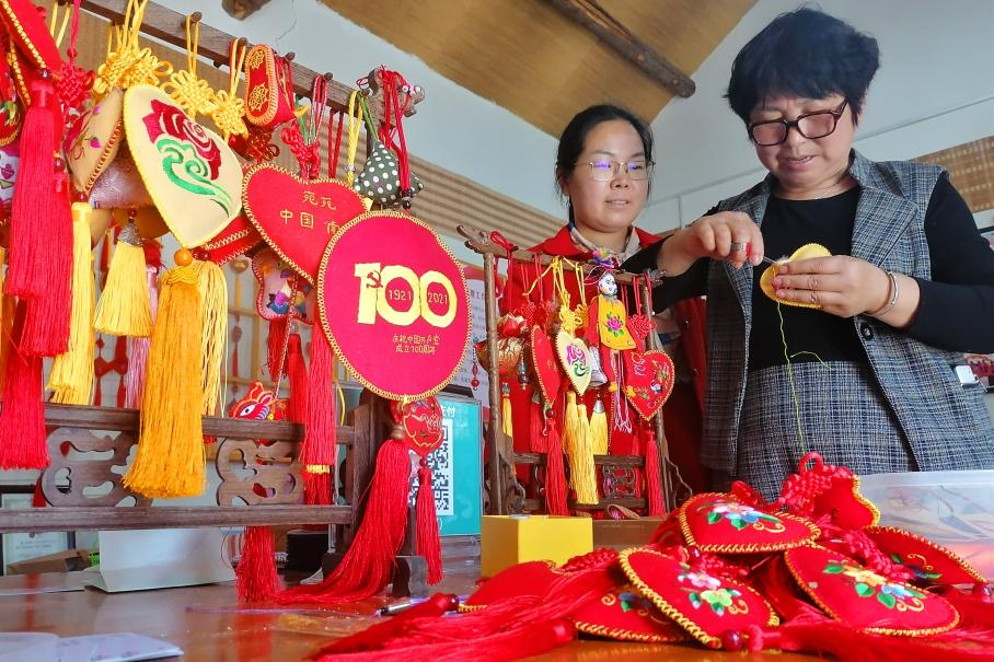 傳統(tǒng)非遺,創(chuàng)新出彩,文化周莊女紅產(chǎn)品越來越靚。2018年7月,經(jīng)過三年摸索運營、積累下豐富經(jīng)驗和人脈的周莊女子工坊在社旗縣工商局正式注冊成立,當(dāng)年被河南省婦聯(lián)、河南省扶貧辦確定為“巧媳婦創(chuàng)業(yè)就業(yè)工程示范基地”;2019年南陽世界月季洲際大會上,周莊香包被作為大會指定產(chǎn)品,通過電商、熟人、老鄉(xiāng)多種渠道,遠銷北京、上海等城市;2020年突如其來的疫情席卷世界,工坊又適時推出“愛心防疫香囊”,不僅暢銷國內(nèi),還被大使館工作人員帶往埃及、英國等地,走出國門,飄香世界;2021年,工坊還設(shè)計制作了慶祝建黨一百周年香包,遠銷井岡山等紅色基地……