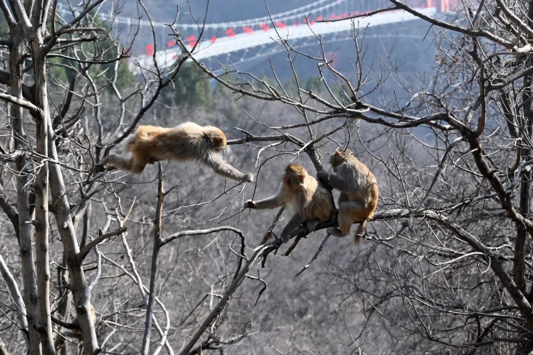 春天的神農(nóng)山陽光燦爛,萬物復(fù)蘇,連小猴子們都忍不住穿梭在山野樹梢間了。一群太行獼猴流連在林間,它們沐浴著暖陽,在山間嬉戲玩耍,給春日神農(nóng)增添了幾分靈動(dòng)。