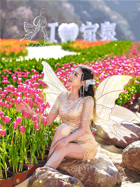 綠野仙蹤中的精靈在發(fā)光,蝴蝶迎著春風(fēng)在身旁翩翩起舞,從暮光中來(lái),到郁金香花海中去,在寶泉花海中跑一跑,仿佛置身于童話夢(mèng)境中。