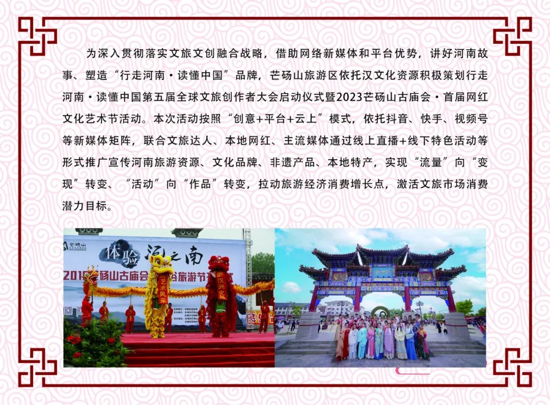 您的當(dāng)前位置:網(wǎng)站首頁 > 出行資訊 > >第五屆全球文旅創(chuàng)作者大會(huì)暨芒碭山古廟會(huì)·首屆網(wǎng)紅文化藝術(shù)節(jié)4月27日開幕
