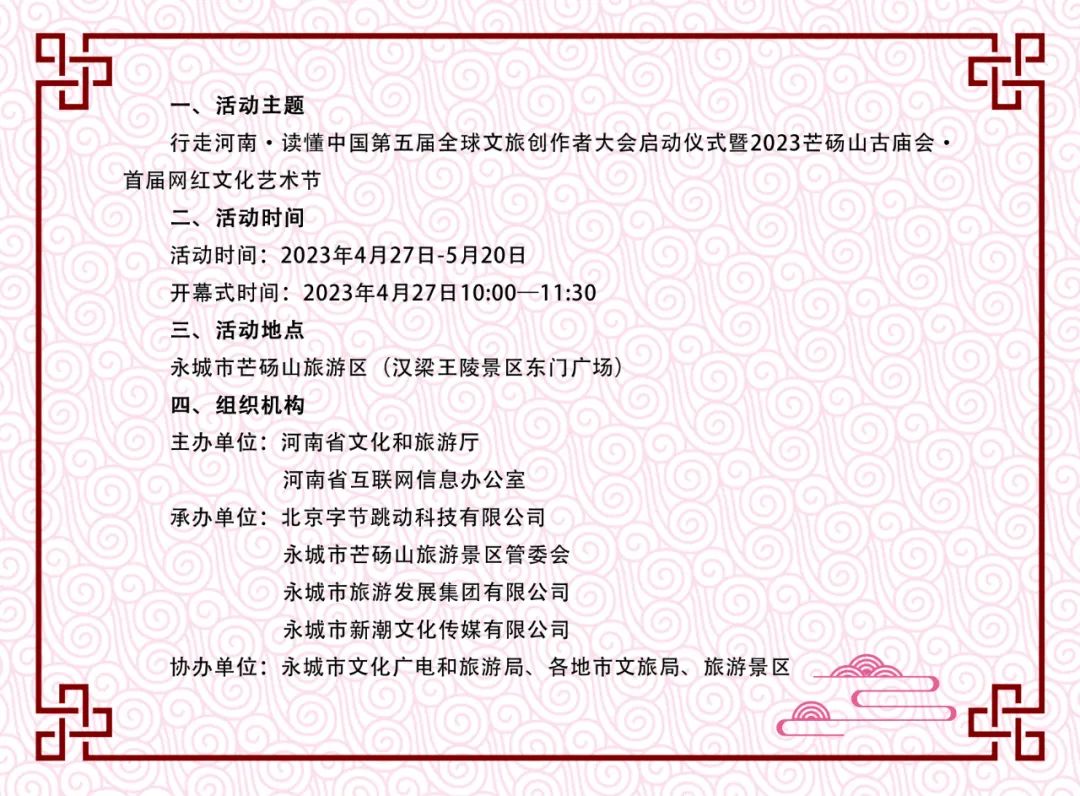 第五屆全球文旅創(chuàng)作者大會(huì)暨芒碭山古廟會(huì)·首屆網(wǎng)紅文化藝術(shù)節(jié)4月27日開幕