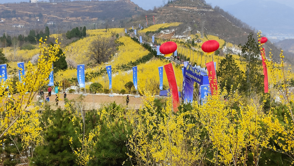 3月19日上午,"清清盧氏·‘翹’首以待"第三屆連翹花季在三門峽盧氏縣望家山萬畝連翹基地正式啟幕。