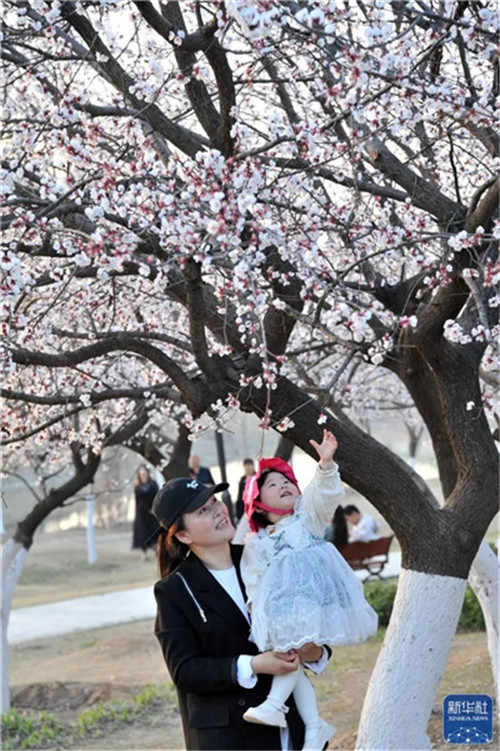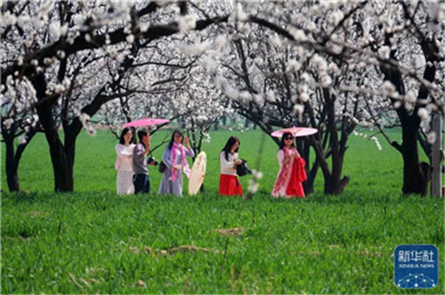 3月15日,游人在濮陽市南樂縣萬畝杏林賞花游玩。王祥領(lǐng) 攝