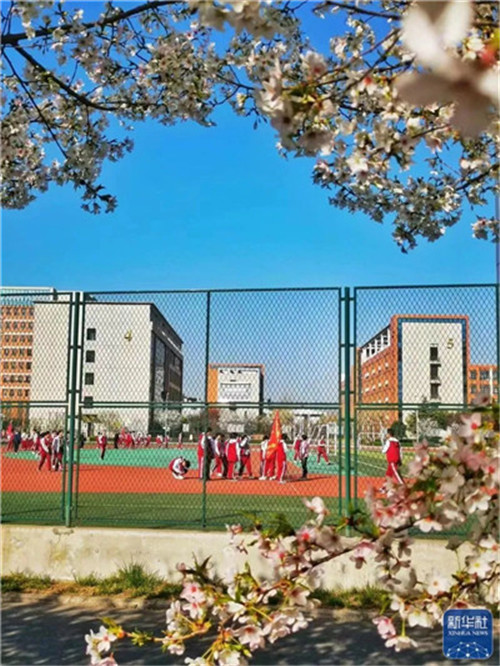 3月14日,鄭州市上街區(qū)鄭州北大培文學(xué)校內(nèi)櫻花盛開。高福生 攝
