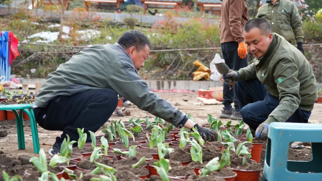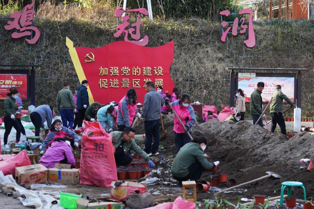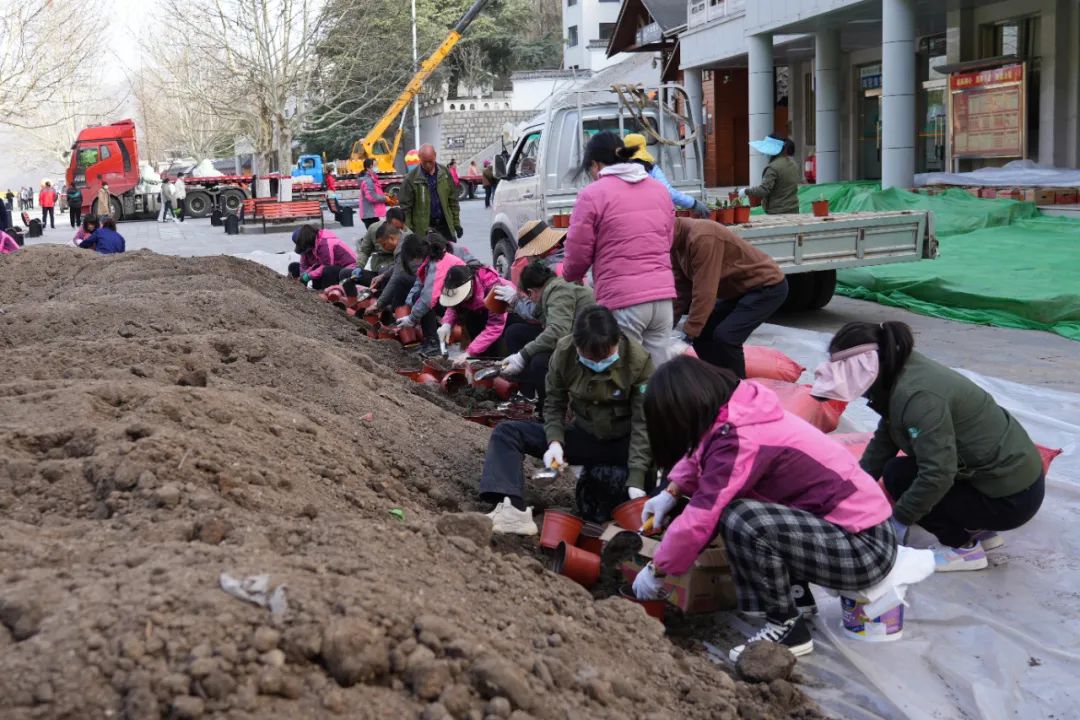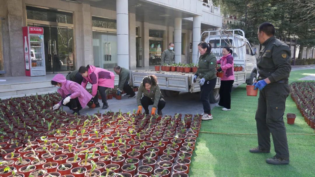 近期,景區(qū)中心廣場上,栽植、搬運、擺放、澆水......工作人員分工明確,有條不紊,擼起袖子加油干,整個廣場上呈現(xiàn)一派熱火朝天的勞動景象。