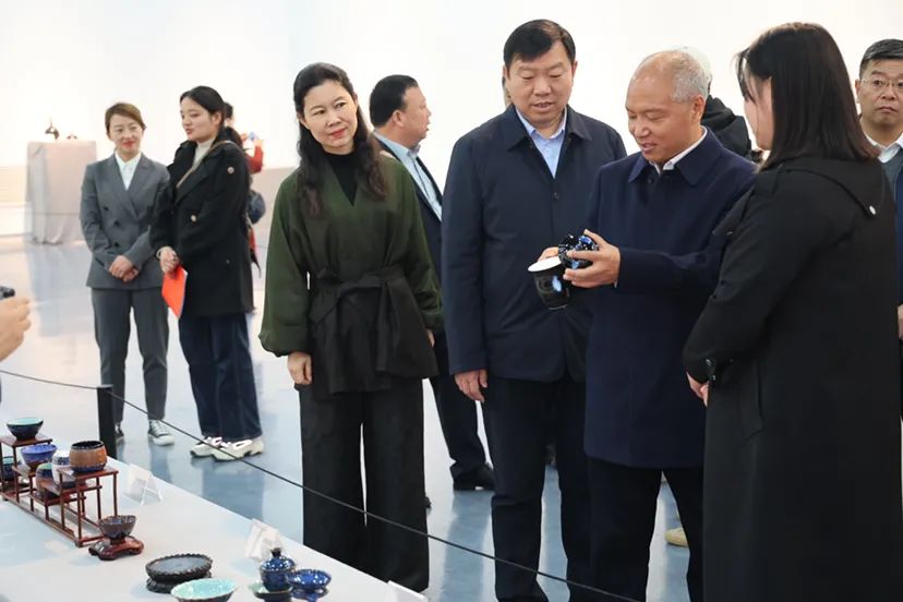 河南省文化和旅游廳二級巡視員呂承俊,魯山縣委書記劉鵬,河南省美術(shù)館館長于會見,平頂山市文化廣電和旅游局黨組書記、局長徐淵,魯山縣委常委、宣傳部長、副縣長焦慧娟,河南省工藝美術(shù)學(xué)會會長、正高級工藝美術(shù)師劉志鈞,河南省陶瓷玻璃行業(yè)管理協(xié)會會長、總工程師楊德林出席開幕式。
