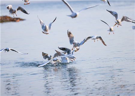 紅嘴鷗在水中嬉戲 趙根元 攝