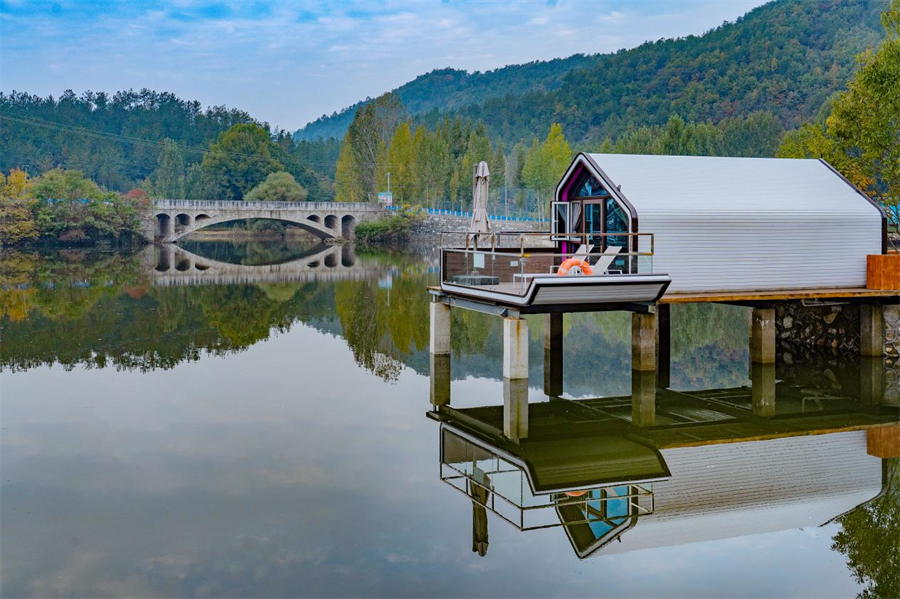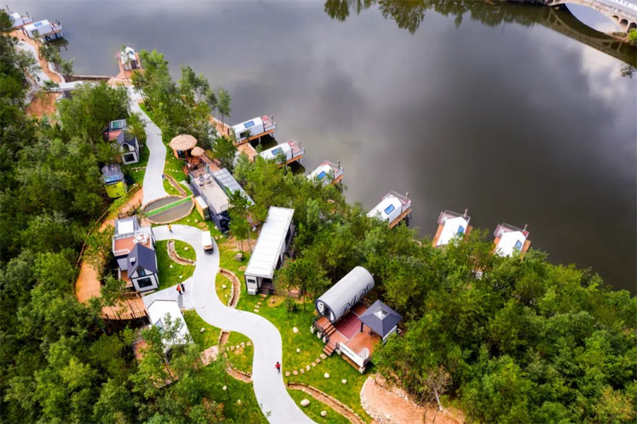 在九龍湖,沿著棧道相連成排的房子就是蓼花汀民宿。隨便拐個(gè)彎就能入住體驗(yàn)到家的溫暖、水云間的自在民宿與湖面搭配成景,美到心醉。背枕青山、湖水環(huán)抱,在這里休閑小憩幾天絕妙不可言,躺在房間也能看盡好風(fēng)景。帶孩子入住集裝箱等形態(tài)獨(dú)特的房型,更留下一個(gè)不一樣的回憶。