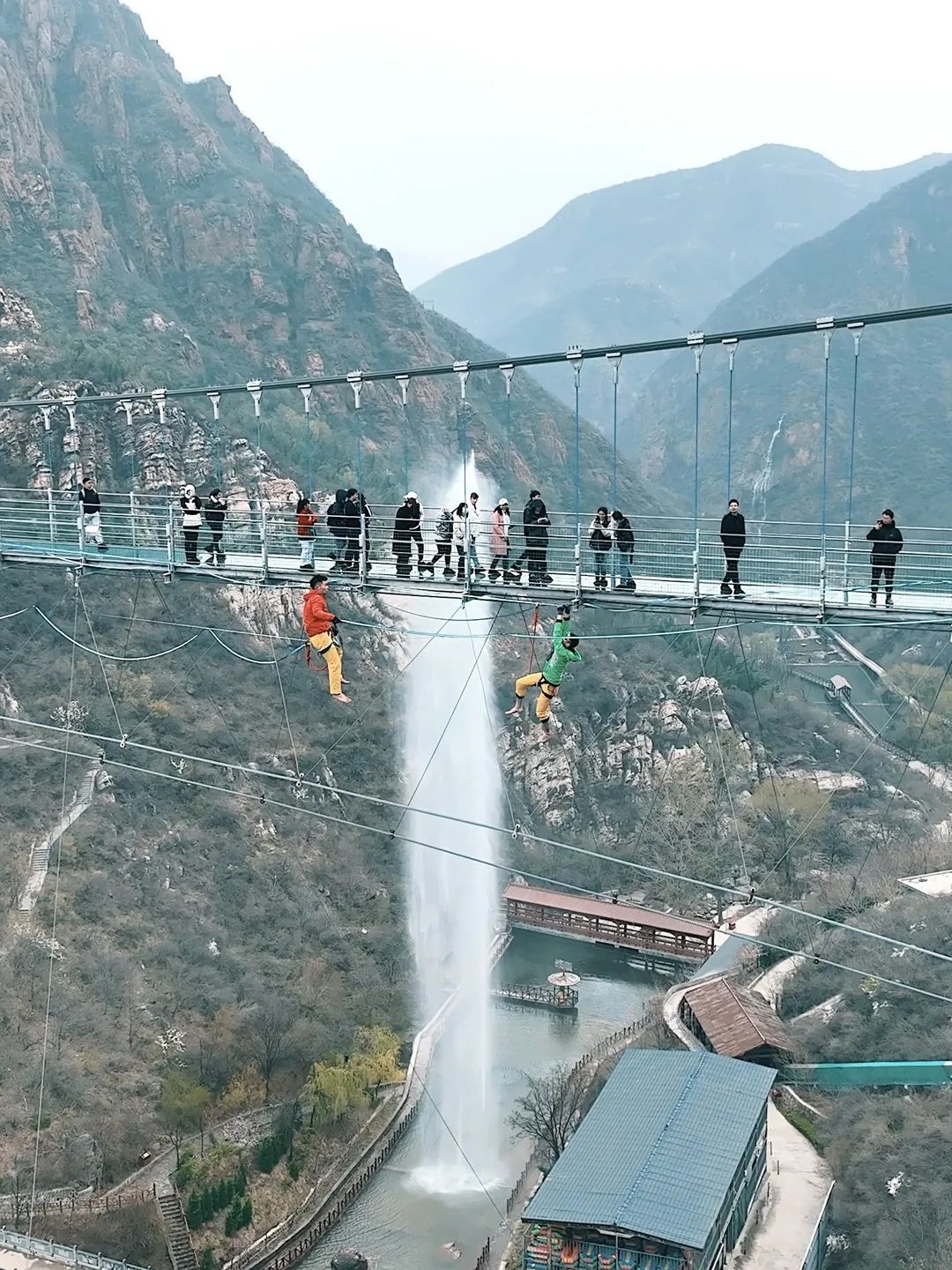 核心體驗(yàn)項(xiàng)目飛雲(yún)天橋——是中原地區(qū)跨度最長(zhǎng)的全透明高空5D玻璃天橋,橋長(zhǎng)266米,垂直落差106米,一橋飛架兩山,凌空漫步于透明懸空的玻璃天橋上,驚險(xiǎn)刺激。