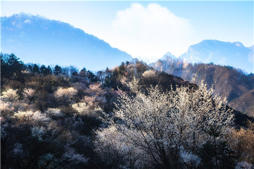 春風(fēng)暖,百花開,在河南省信陽(yáng)市商城縣鄉(xiāng)間,梅花紅、杏花白、玉蘭紫、櫻花粉……多彩的山花喚醒了酣睡的春天,溫暖的春風(fēng)舞動(dòng)了花的姿態(tài)。
