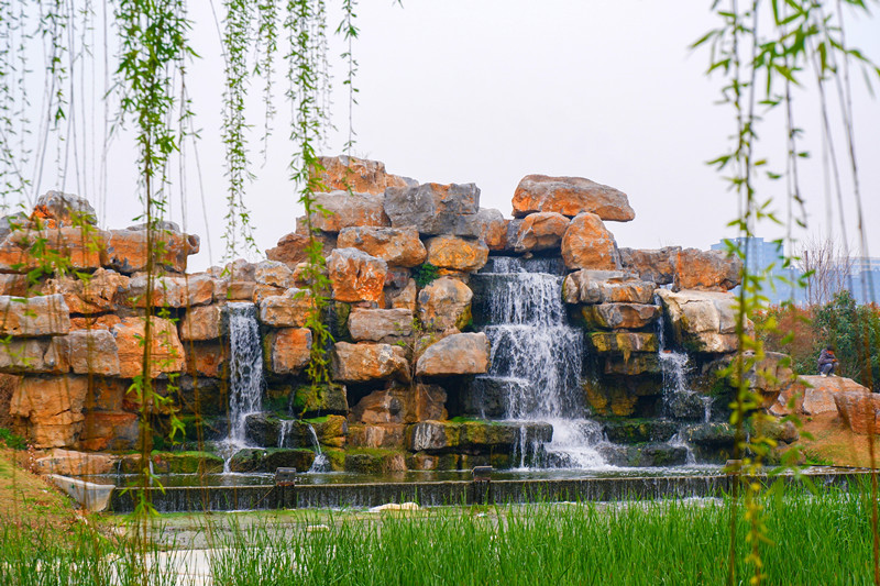 公園中的瀑布,給游人帶來了無(wú)窮樂趣。 姚廣輝 攝