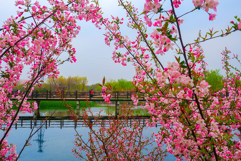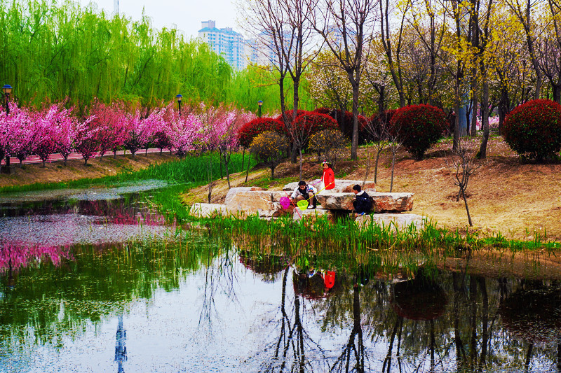 春回大地,萬(wàn)物復(fù)蘇。河南省漯河市臨潁縣桂湖五彩森林公園成為人們踏青賞花好去處。
