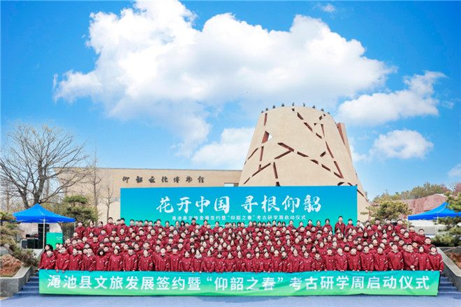 這是花開中國(guó)·尋根仰韶——“仰韶之春”考古研學(xué)周啟動(dòng)儀式現(xiàn)場(chǎng),來自仰韶學(xué)校的300余名師生在仰韶村國(guó)家考古遺址公園參加了研學(xué)實(shí)踐活動(dòng)。