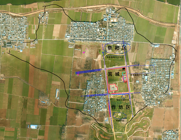 經(jīng)多年的考古工作,考古人員在二里頭遺址中心區(qū)發(fā)現(xiàn)了“井”字形城市主干道路網(wǎng)絡(luò),初步顯示了二里頭遺址宮殿區(qū)居中的“九宮格”式布局框架,并據(jù)宮殿區(qū)、作坊區(qū)外圍存在墻垣的情況,推測(cè)其他網(wǎng)格的各貴族居住和墓葬區(qū)外圍也應(yīng)有墻垣圍護(hù)。
