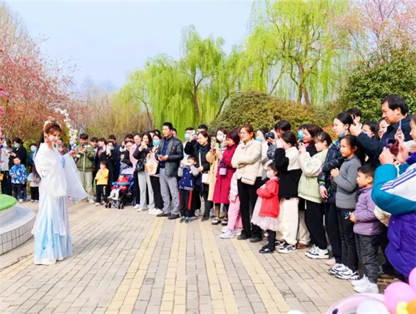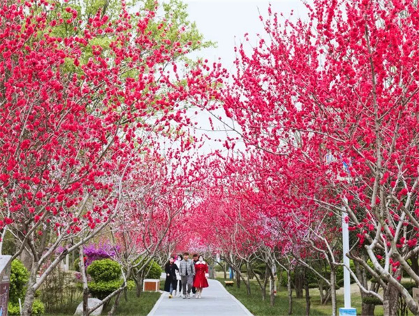 除了郁金香,園區(qū)內(nèi)的海棠、碧桃、二月蘭等花卉也開的正盛;▓F(tuán)錦簇,如云似霧,步入樹下,感受滿樹的春光浪漫。