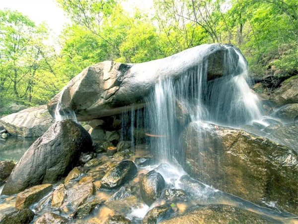 神靈寨的水,清、秀、柔、幽,飄逸的水線,似如美少女的披發(fā),宛如一道美麗的畫廊。溪流生飛瀑、流瀑孕碧潭,瀑瀑相連,潭潭相顧,移步換形,步隨景移,觀山重在游,賞水重在玩。