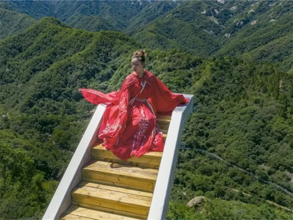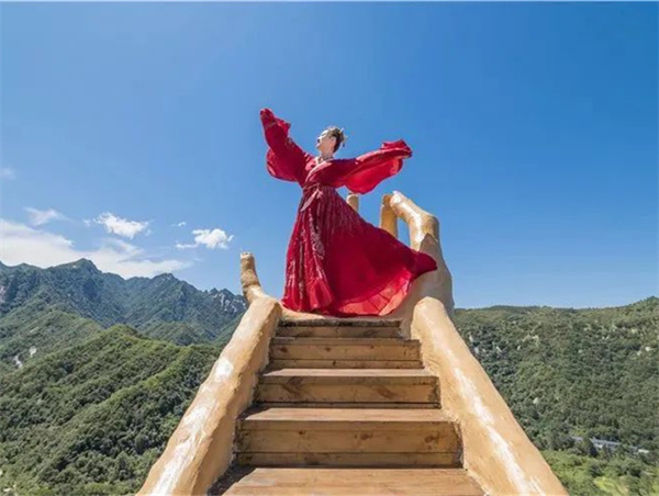 登上置于頂端的云海天梯,漫步于云間,俯瞰山野,與山間林谷為伴,與藍(lán)天白云合照,感受踮起腳就能觸碰到藍(lán)天。