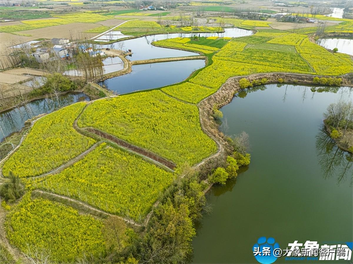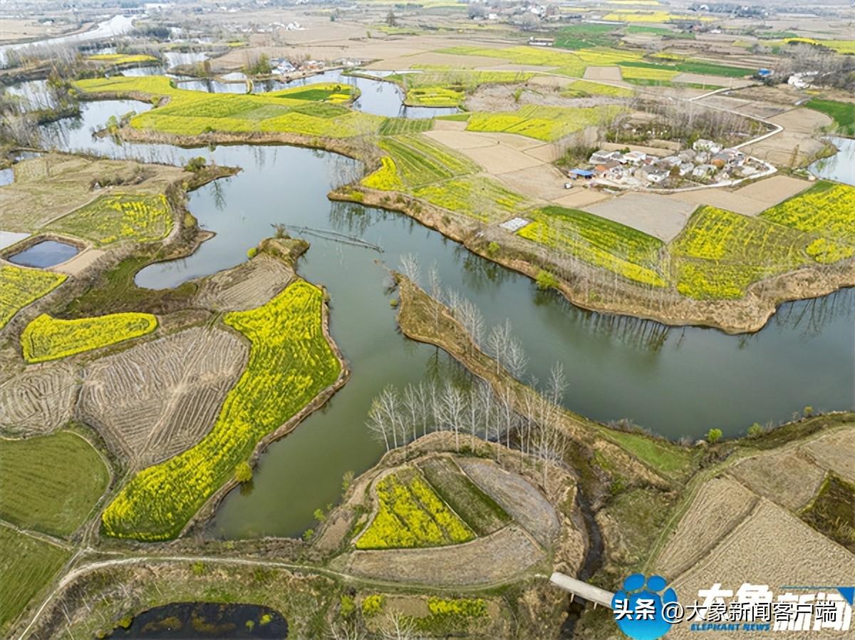 春回大地織錦秀,信陽市光山縣北向店鄉(xiāng)吳大灣村,千畝油菜花織就田園畫卷,村莊里處處彌漫著油菜花的芳香,河塘密布,花在水畔,水映花影,美不勝收。