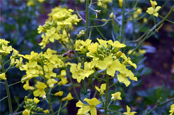 初春時節(jié),在遠(yuǎn)近聞名的“幸福村”“文明村”,紫陵鎮(zhèn)趙寨村的千畝花海,金燦燦的油菜花爛漫盛開,微風(fēng)吹過,金黃色的花浪明艷動人。香氣撲鼻的油菜花,引得成群的蜜蜂在油菜花海中徜徉、采蜜。