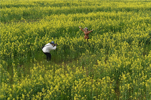 游人在油菜花海拍照 楊帆攝