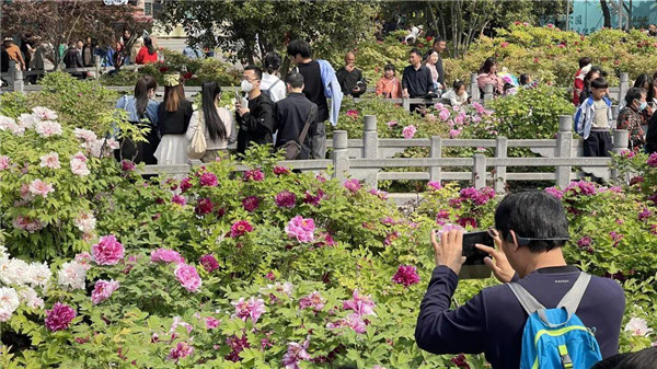 中國國花園是洛陽市牡丹專類觀賞園,儀式結(jié)束,游客紛紛到牡丹盛開處打卡拍照。