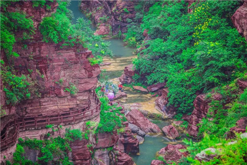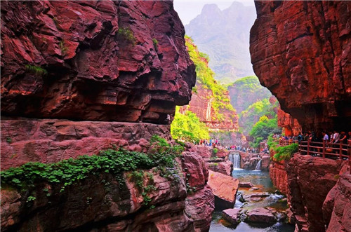其中峽谷奇觀紅石峽,奇在四季如春,集泉、瀑、溪、潭、峻峰、怪石等景觀于一澗 ,融奇、雄、秀、險、幽、奧與一峽,巧妙將大自然陽剛之氣和陰柔之美融為一體,將山川精華薈萃于方寸之中,不可謂不奇,其山,為山下之山;其水,乃水下之水,千般美景和萬種風情皆身藏地面之下。