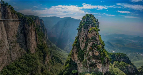 云臺地貌主要以峰、崖、溝、谷等地貌形態(tài)和懸泉、瀑布、溪潭、水庫以及各類巖溶洞穴為主要表現(xiàn)形式,具有景觀多樣性的特點。其中以紅石峽嶂谷、云臺天瀑、小寨溝甕谷以及長崖斷壁、單面山、峰叢、峰墻等地貌表現(xiàn)最為突出。