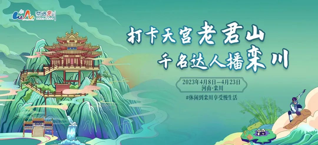 4月8日至23日 “打卡天宮老君山,千名達(dá)人播欒川” 活動即將精彩啟程!屆時全國百余名頭部大V走進(jìn)欒川,通過短視頻、直播等形式對各大景區(qū)門票、美食、民宿、欒川印象產(chǎn)品等進(jìn)行推廣宣傳,并在老君山地質(zhì)廣場舉行盛大啟動儀式。