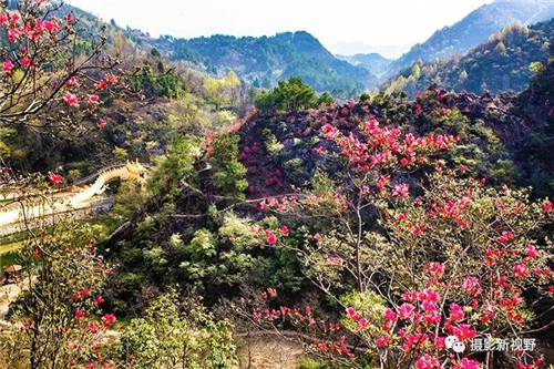 商城縣伏山鄉(xiāng)大別山中有個臥龍灣,這里山巒疊嶂,植被茂密。春日,這里的映山紅開了,山川絢麗多彩。