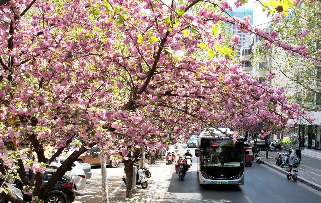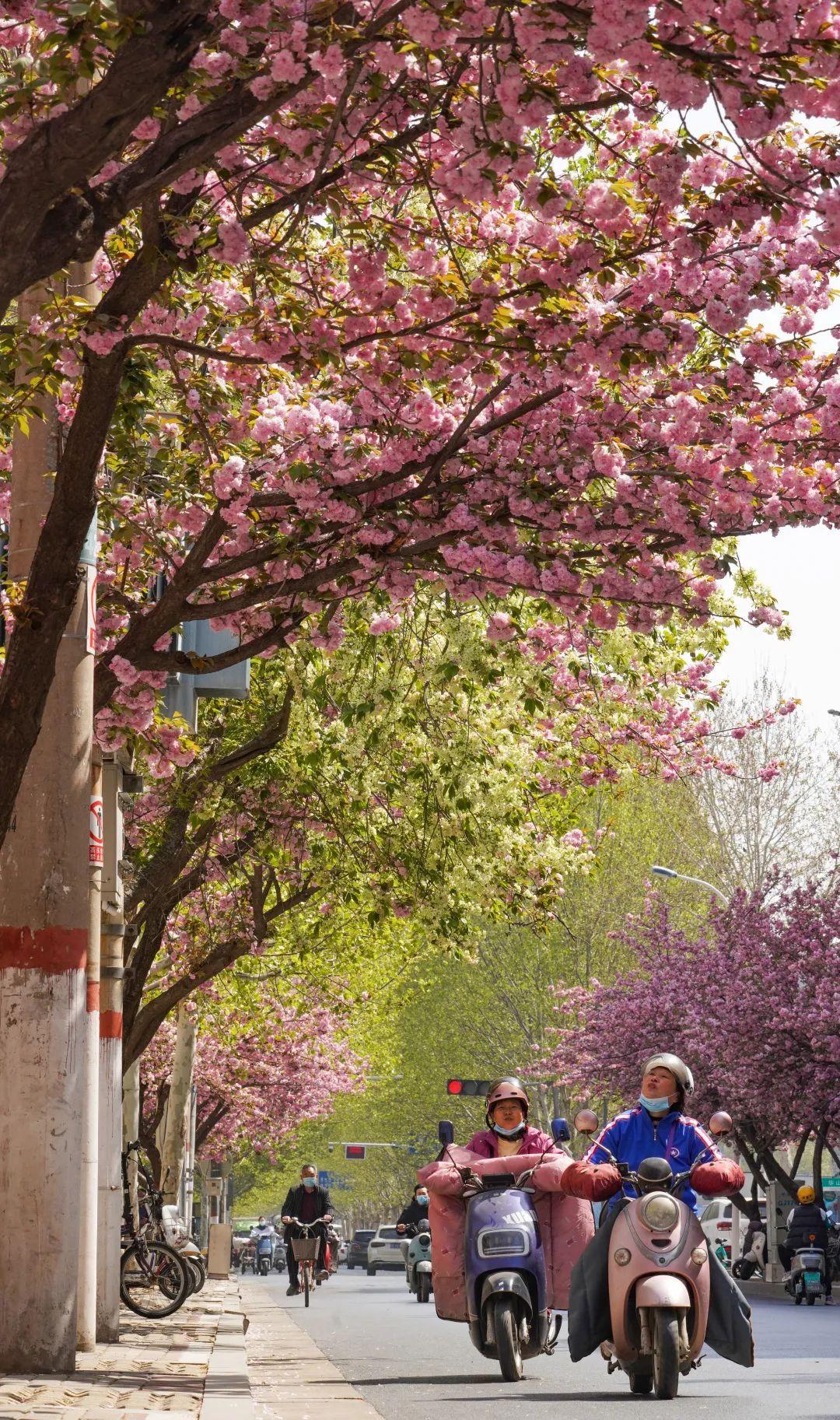 四月,陽光明媚,春風(fēng)正好,鄭州街頭的一株株櫻花正熱鬧地開放著……