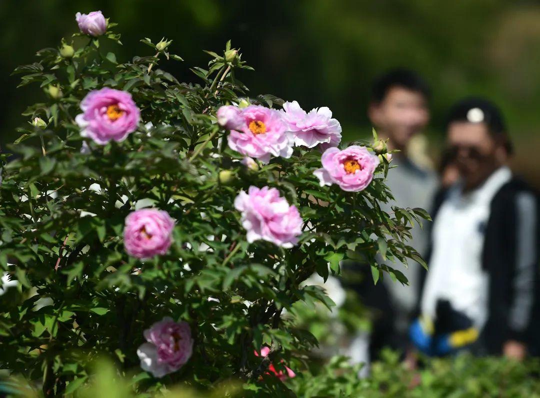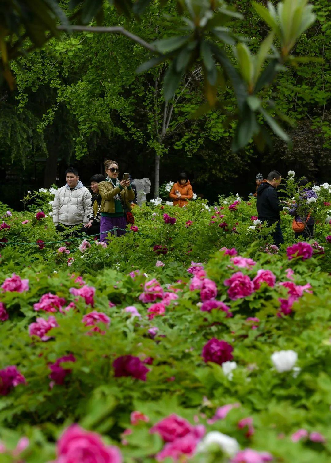 進(jìn)入公園里,雍容華貴的牡丹花,在微風(fēng)中身姿搖曳,形成了古韻的人文氣息,吸引不少游人駐足欣賞。