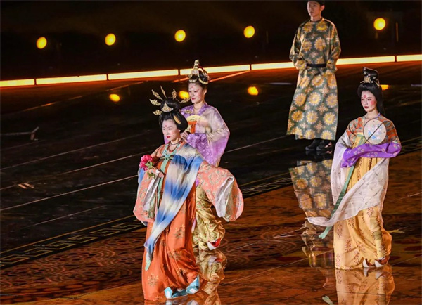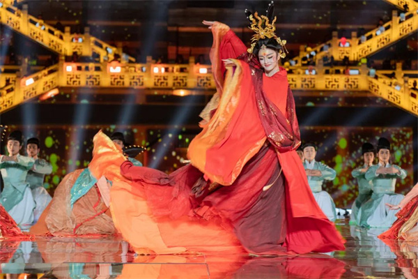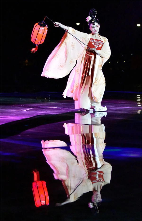 線下晚會(huì)以160名演員在牡丹閣表演的盛大掛燈儀式開(kāi)場(chǎng),緊接著是著名舞者駱文博領(lǐng)銜的大型群舞《國(guó)色天香》表演,盡顯古典韻味,帶領(lǐng)觀眾走進(jìn)花的海洋,感受洛陽(yáng)的魅力。晚會(huì)還有講述洛陽(yáng)詩(shī)書(shū)傳奇的舞蹈表演,以及大型華服秀表演,在節(jié)目的最后,還舉行了盛大的無(wú)人秀。