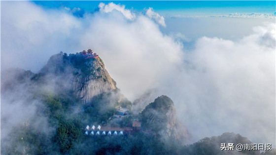 位于南召縣四棵樹鄉(xiāng)境內(nèi)的五朵山因有五座山峰并峙、似巨蓮盛開而得名,為國家AAAA級景區(qū),總面積126平方公里。這里道教文化厚重,因五朵山與“南頂”武當(dāng)山遙相呼應(yīng),又被稱為“北頂”,是明清以來中原和江漢地區(qū)著名的道教圣地。主要景觀有金頂、天梯、暴瀑峽、萬福宮等。